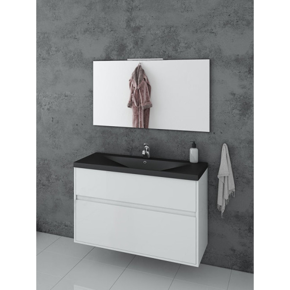 Έπιπλο Μπάνιου Κρεμαστό Λευκή Πολυεστερική Λάκα Μαύρος Πορσελάνινος Νιπτήρας