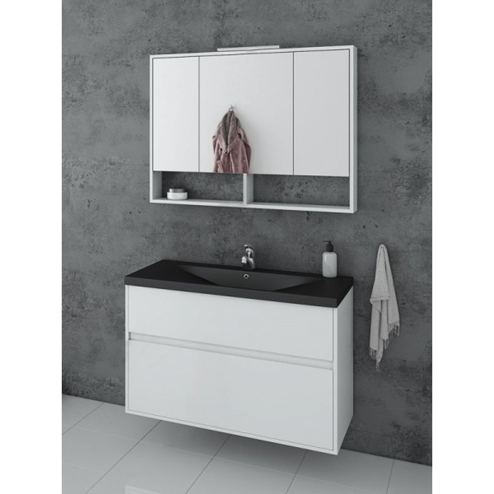 Έπιπλο Μπάνιου Κρεμαστό Λευκή Πολυεστερική Λάκα Μαύρος Πορσελάνινος Νιπτήρας