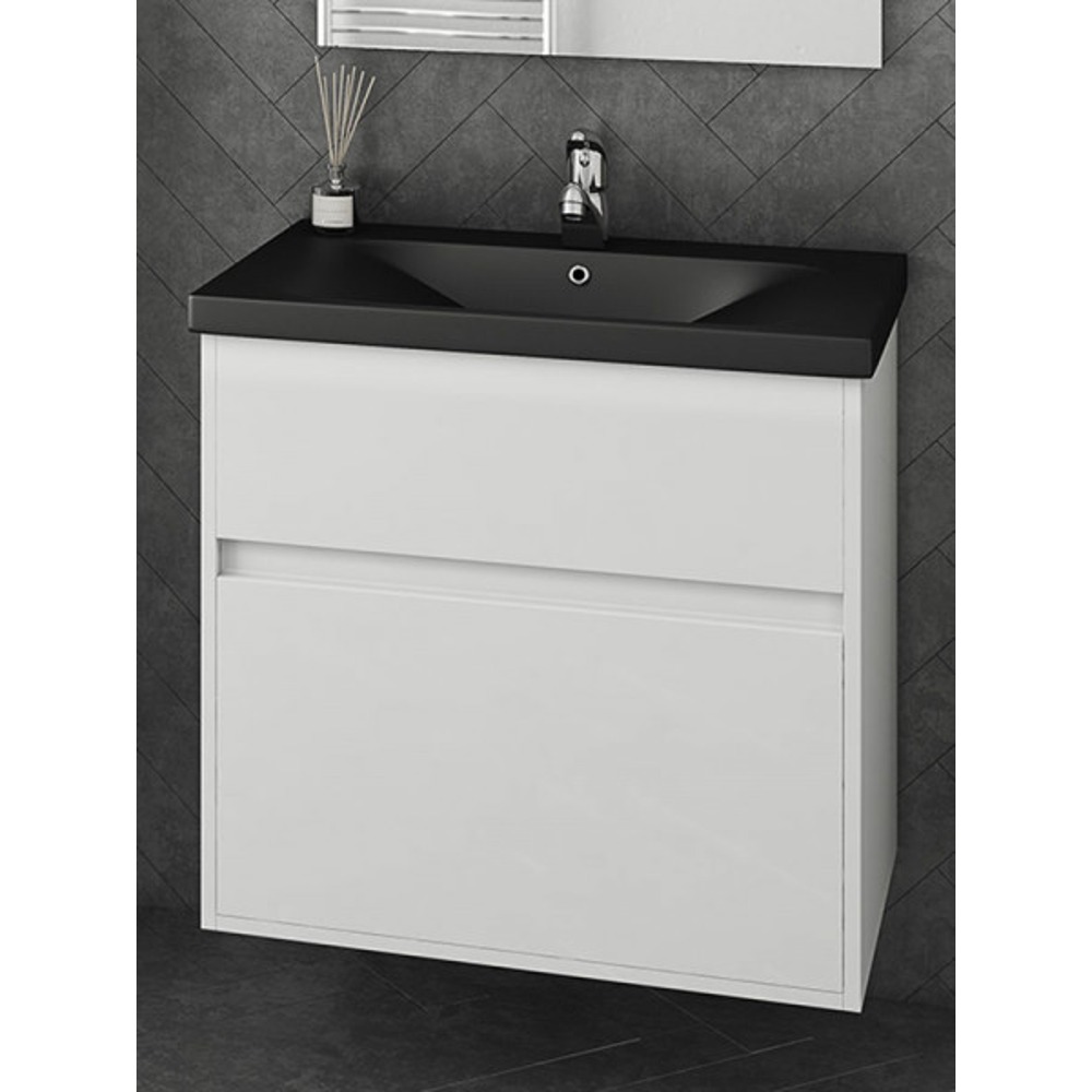 Βάση Επίπλου Μπάνιου Λευκή Πολυεστερική Λάκα Μαύρος Πορσελάνινος Νιπτήρας