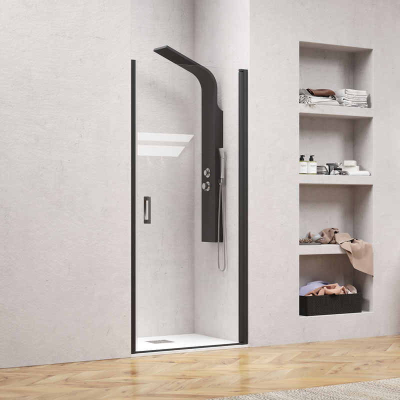 Καμπίνα από τοίχο σε τοίχο με διάφανο κρύσταλλο NERO PIVOT PORTA Black KARAG (NEPP)